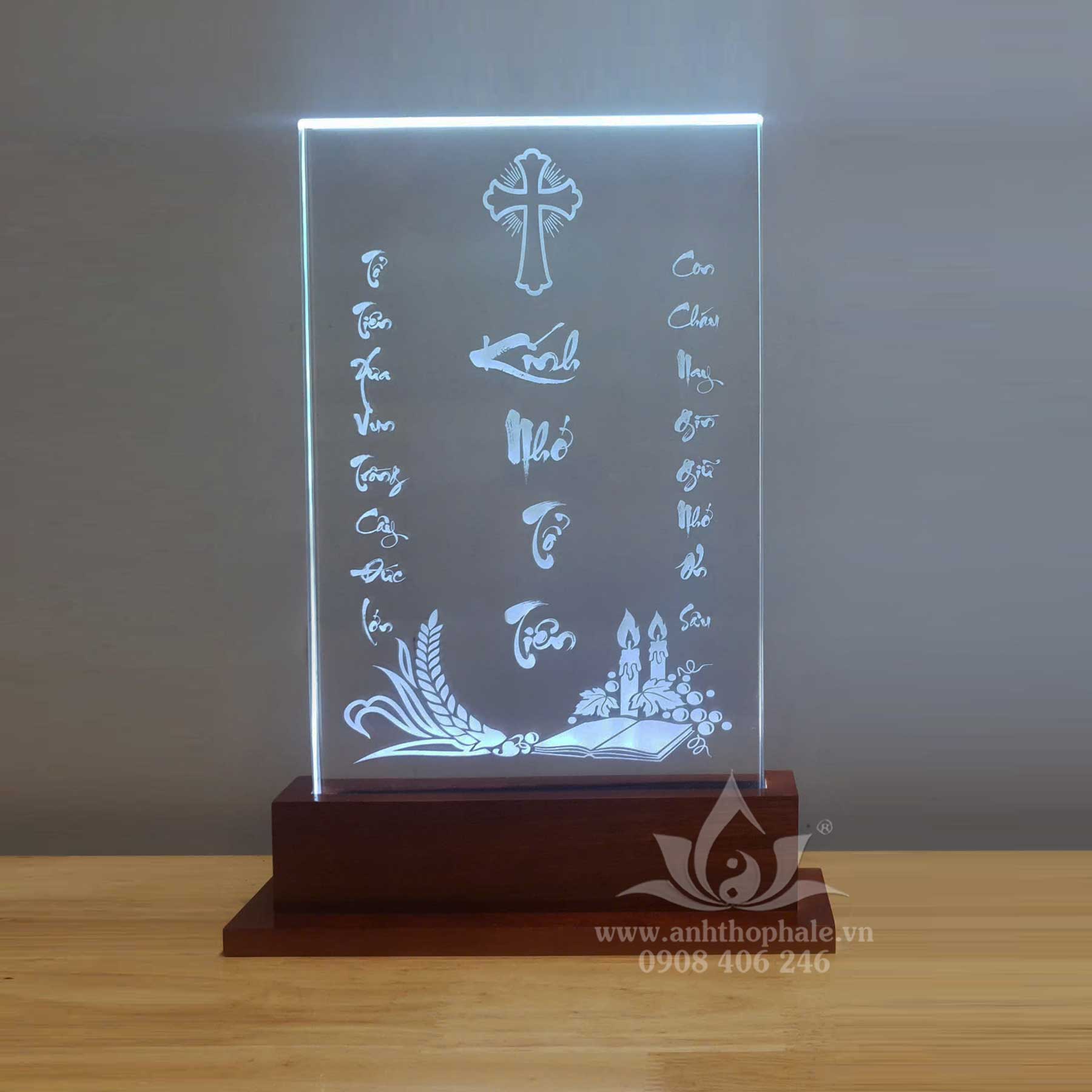 – Bài vị pha lê công giáo khắc laser 18x25cm