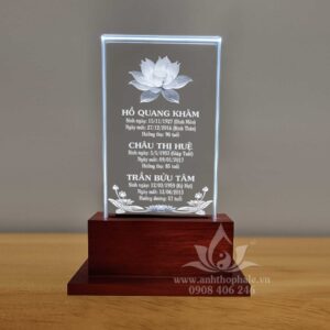 Bài vị pha lê khắc laser 10×20 đế chạm sen