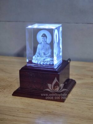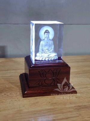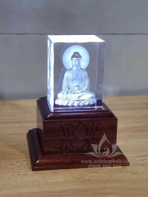 - Tượng Phật A Di Đà ngồi đài sen khắc laser pha lê 3D: 6x9x6cm